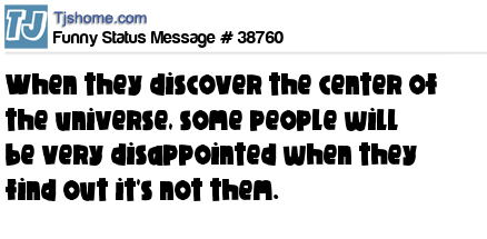 - # 208756 Someday when scientists discover the center of the universe, a lot of people are going to be disappointed to find out it isn't them.