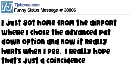 X is I just got home from the airport where I chose the advanced pat down option and now it really hurts when I pee. I really hope that's just a coincidence