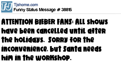 X is ATTENTION BIEBER FANS: All shows have been cancelled until after the holidays. Sorry for the inconvenience, but Santa needs him in the workshop.