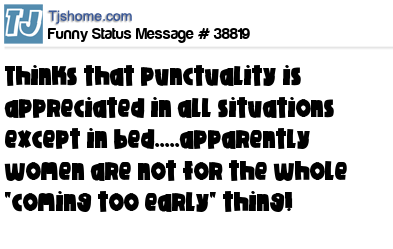 X thinks that punctuality is appreciated in all situations except in bed.....apparently women are not for the whole "coming too early" thing!