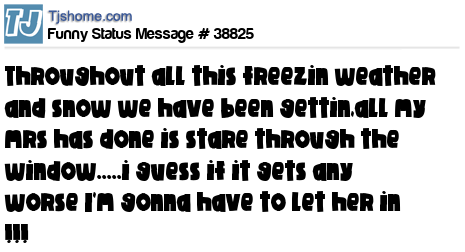 X is Throughout all this freezin weather and snow we have been gettin,all my mrs has done is stare through the window.....i guess if it gets any worse I'm gonna have to let her in !!!