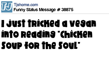 X I just tricked a vegan into reading "Chicken Soup for the Soul"
