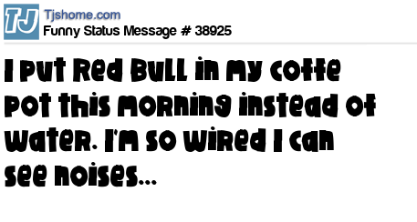 - # 52867 This morning I put Red Bull into my coffee maker instead of water and now I can see noises.