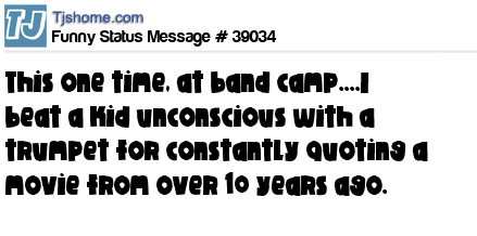X This one time, at band camp....I beat a kid unconscious with a trumpet for constantly quoting a movie from over 10 years ago.