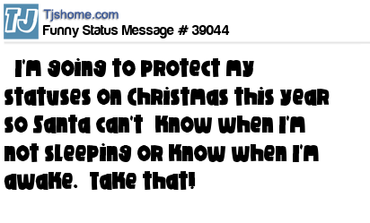 X ■I'm going to protect my statuses on Christmas this year so Santa can't “know when I'm not sleeping or know when I'm awake.” Take that!