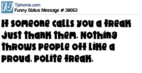 X If someone calls you a freak just thank them. Nothing throws people off like a proud, polite freak.