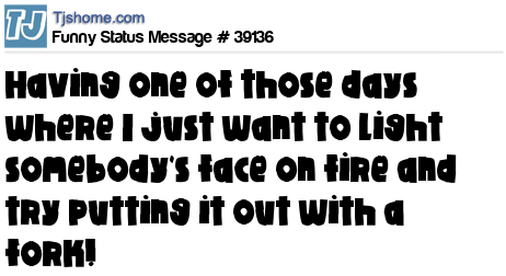 - # 31933 having one of those days where I wanna set someones face on fire and try putting it out wit a fork