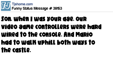 X Son, when I was your age, our video game controllers were hard wired to the console. And Mario had to walk uphill both ways to the castle.