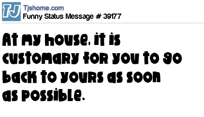 X At my house, it is customary for you to go back to yours as soon as possible.