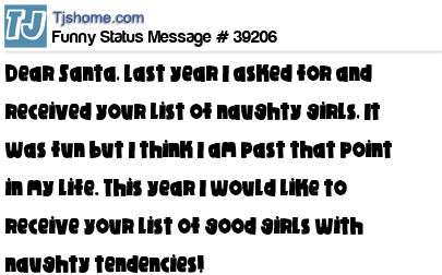 X Dear Santa, Last year I asked for and received your list of naughty girls, It was fun but I think I am past that point in my life. This year I would like to receive your list of good girls with naughty tendencies!