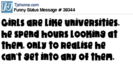 X says Girls are like universities. he spend hours looking at them, only to realise he can't get into any of them.