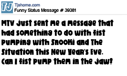 X MTV just sent me a message that had something to do with fist pumping with Snooki and The Situation this New Year's Eve. Can I fist pump them in the jaw?