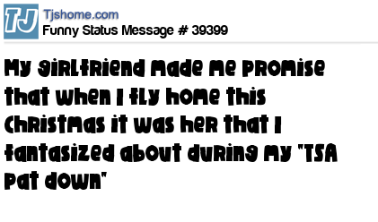 X My girlfriend made me promise that when I fly home this Christmas it was her that I fantasized about during my "TSA pat down"