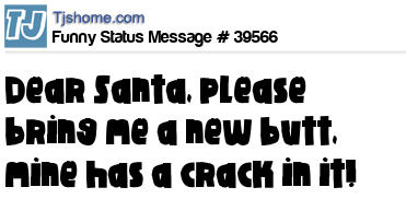 X says Dear Santa, please bring me a new butt, mine has a crack in it!