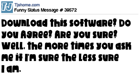 X  Download this software? Do you Agree? Are you sure? Well, the more times you ask me if I'm sure the less sure I am.