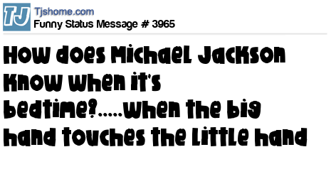 X How does Michael Jackson know when it's bedtime?.....when the big hand touches the little hand