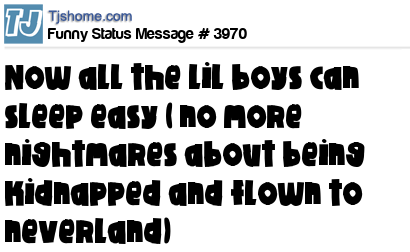 X Now all the lil boys can sleep easy ( no more nightmares about being kidnapped and flown to neverland)