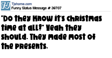 X "Do they know it's christmas time at all?" Yeah they should. They made most of the presents.
