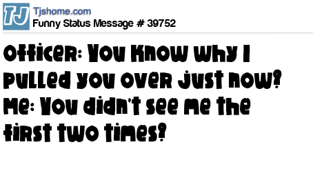 X Officer: You know why I pulled you over just now? Me: You didn't see me the first two times?