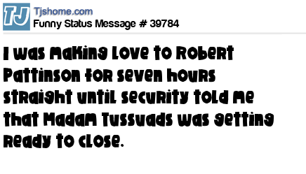 X is I was making love to Robert Pattinson for seven hours straight until security told me that Madam Tussuads was getting ready to close.