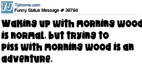 X says Waking up with morning wood is normal, but trying to piss with morning wood is an adventure.