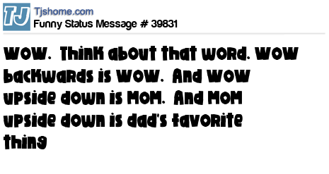- # 99994 WoW. Think about that word. WoW backwards is WoW. And WoW upside down is MoM. And MoM upside down is dad's favorite thing. :)