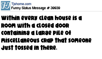 X Within every clean house is a room with a closed door containing a large pile of miscellaneous crap that someone just tossed in there.