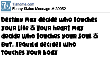 X says Destiny may decide who touches your Life ~ Your heart may decide who touches your Soul ~ But...Tequila decides who touches your body