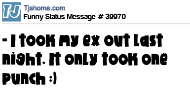 - # 174267 I took my ex out last night, it only took one punch! :)