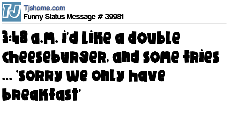 X says 3:48 a.m. i'd like a double cheeseburger, and some fries ... 'sorry we only have breakfast'
