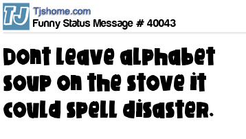 - # 29683 If you leave alphabet soup on the stove and go out, it could spell disaster.