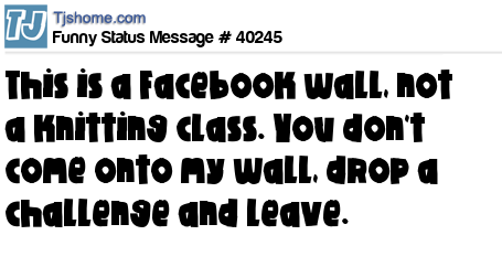 X This is a Facebook wall, not a knitting class. You don't come onto my wall, drop a challenge and leave.