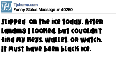 - # 48237 I slipped and fell on ice today. I realized it was black ice when I got up and my wallet and keys were missing.