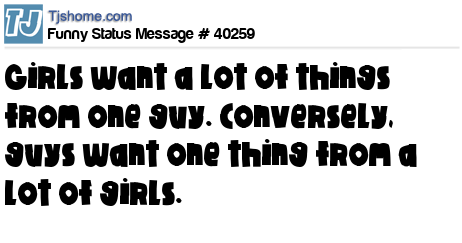 - # 21173 Girls want a lot of things from one guy. Conversely, guys want one thing from a lot of girls.