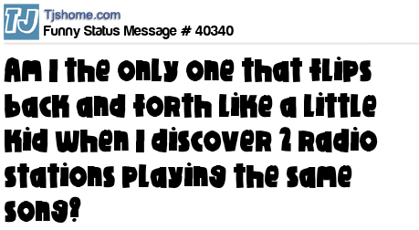 X is Am I the only one that flips back and forth like a little kid when I discover 2 radio stations playing the same song?