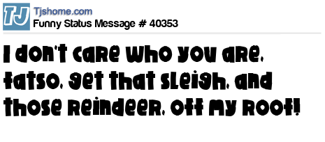 X says I don't care who you are, fatso, get that sleigh, and those reindeer, off my roof!