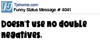 - # 101300 Starting tomorrow, every place I visit, I'm going to speak exclusively in double negatives. I'd do it today, but I'm not going nowhere.