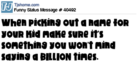 X When picking out a name for your kid make sure it's something you won't mind saying a BILLION times.