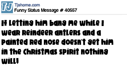X is If letting him bang me while I wear reindeer antlers and a painted red nose doesn't get him in the Christmas spirit nothing will!