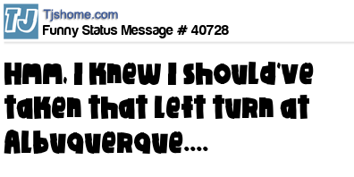 X says Hmm, I knew I should've taken that left turn at Albuquerque....