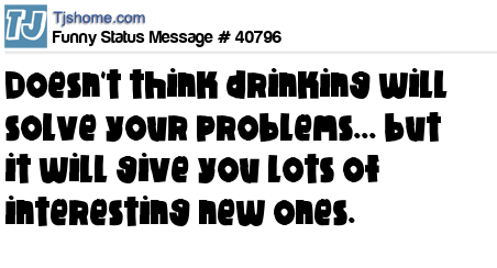 - # 40498 Drinking won't solve your problems, but it will give you lots of interesting new ones.