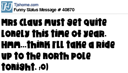 X Mrs Claus must get quite lonely this time of year. Hmm...think I'll take a ride up to the north pole tonight. ;0)