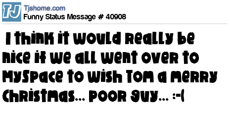 X I think it would really be nice if we all went over to MySpace to wish Tom a merry Christmas... poor guy... :-(