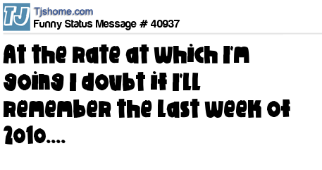 X is At the rate at which I'm going I doubt if I'll remember the last week of 2010....