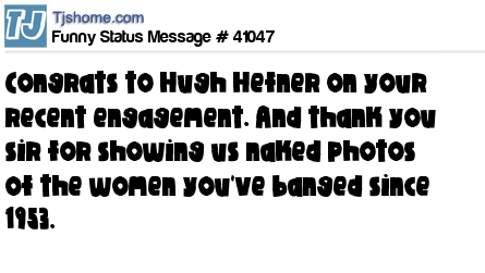 X Congrats to Hugh Hefner on your recent engagement. And thank you sir for showing us naked photos of the women you've banged since 1953.