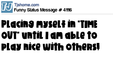 - # 41103 placing myself in "TIME OUT" until I am able to play nice with others! Until then, don't piss me off because I have nothing to lose being in Time Out already!"