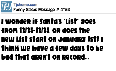 X I wonder if Santa's "list" goes from 12/25-12/25, or does the new list start on January 1st? I think we have a few days to be bad that aren't on record...