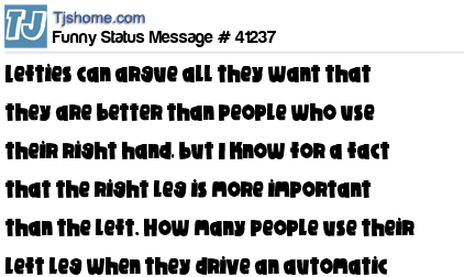 X says Lefties can argue all they want that they are better than people who use their right hand, but I know for a fact that the right leg is more important than the left. How many people use their left leg when they drive an automatic car?