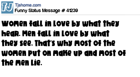 - # 56107 Girls fall in love with what they hear, Boys fall in love with what they see, that's why girls wear make up and boys lie.