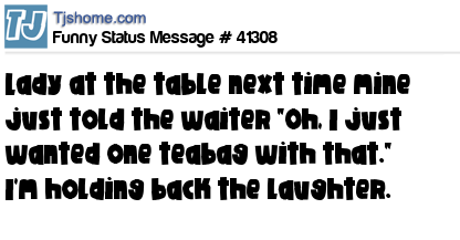 X Lady at the table next time mine just told the waiter "Oh, I just wanted one teabag with that." I'm holding back the laughter.